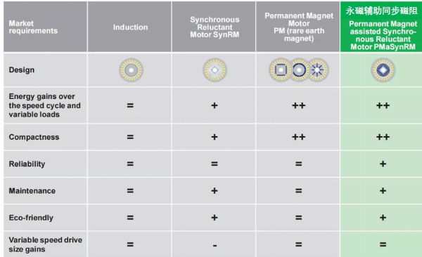 ① Động cơ đồng bộ từ trở IE5 sử dụng nam châm vĩnh cửu không chứa đất hiếm