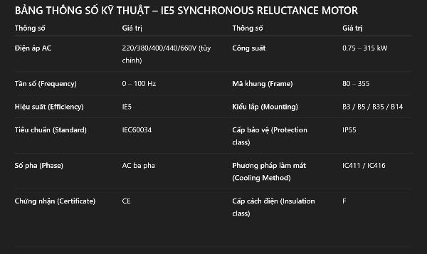 Ưu điểm chính của động cơ đồng bộ từ trở IE5